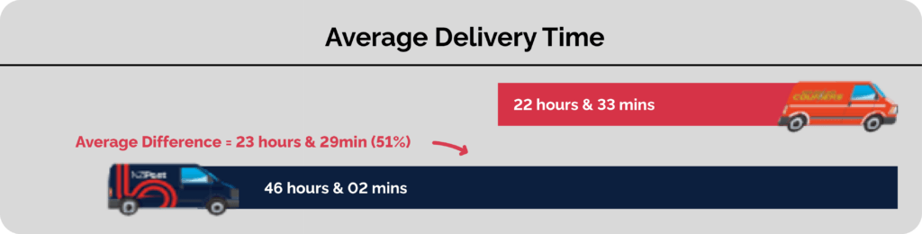 New Zealand Couriers’ residential deliveries were completed in less than half the average time taken by NZ Post for the same addresses and across the same delivery period.